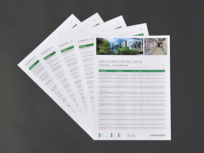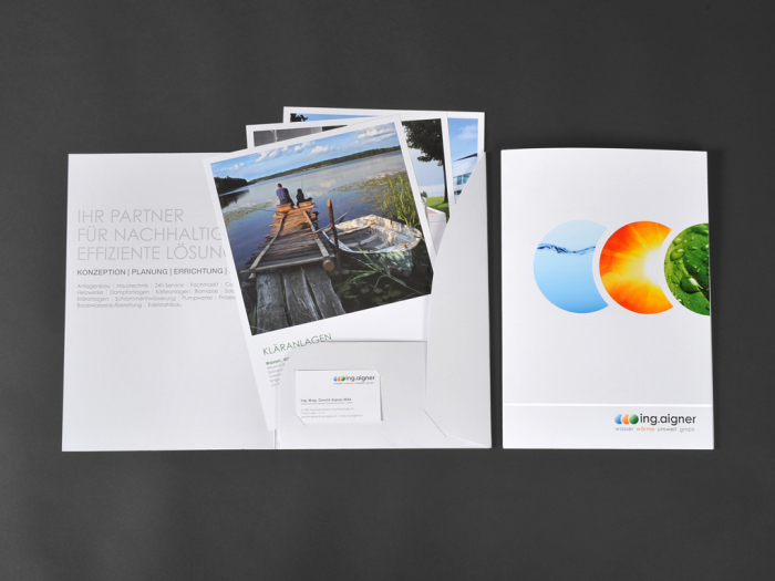 Die Drucksorten wurden CO2 neutral gedruckt. Das Papier ist ungestrichen und kommt aus nachhaltiger Forstwirtschaft (FSC) - die Texte aus einer Feder mit einfachen, klaren Worten, die potentielle Kunden nicht überreden sondern überzeugen und zu zufriedenen Kunden machen wollen. ing. aigner – nachhaltige Partnerschaft eben.